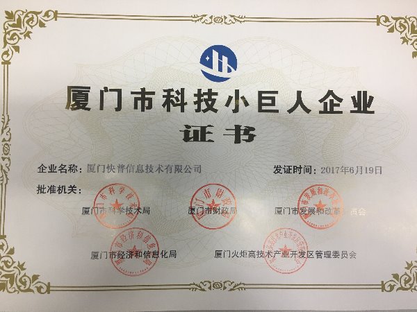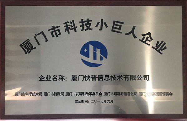 近日,福建省科技廳公布2017年科技小巨人企業(yè)名單,廈門快普信息技術(shù)有限公司憑借自身的卓越實(shí)力,在激烈競(jìng)爭中脫穎而出,被授予2017年“廈門市科技小巨人企業(yè)“榮譽(yù)稱號(hào)。
