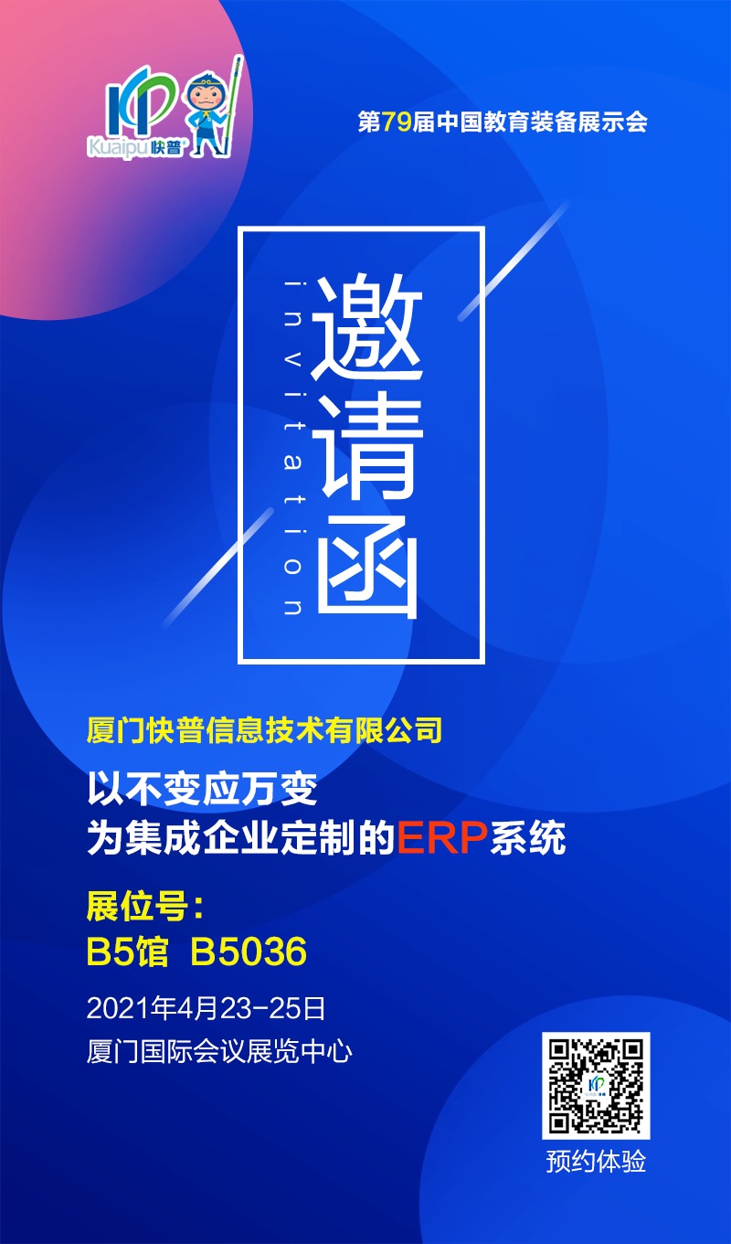 作為福建本土知名軟件廠商,快普致力于集成企業(yè)信息化服務(wù)已有十余年,成為許多集成企業(yè)的軟件系統(tǒng)供應(yīng)商,并連續(xù)多年被邀約參與中國教育裝備展示會(huì)。