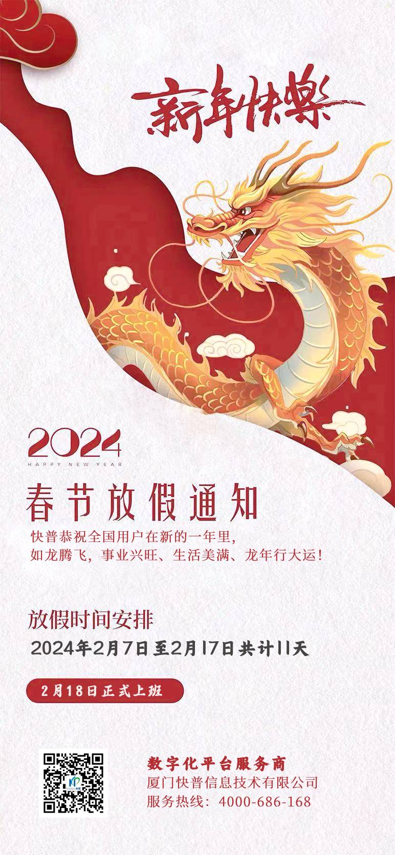 2024年春節(jié)即將到來,快普公司全體員工提前恭祝快普用戶在新的一年里,龍馬精神,龍騰虎躍,事業(yè)如日中天,生活步步高升!感謝您長期以來對我們工作的理解和支持。